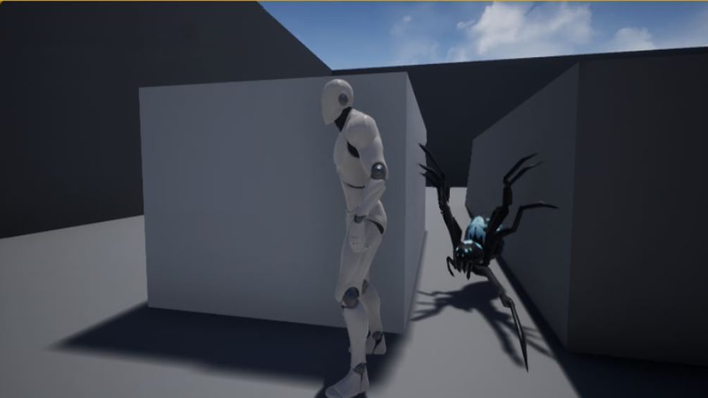 This is a spider character done in C++ for best performance to use in Unreal Engine 4.27 that can move anywhere, climb walls and ceilings, can follow player and pass any obstacles even dynamic ones. Of course can be some limitations depending on how complex is your game and what you want to do with the spider, but in 90% of cases you should be ok.